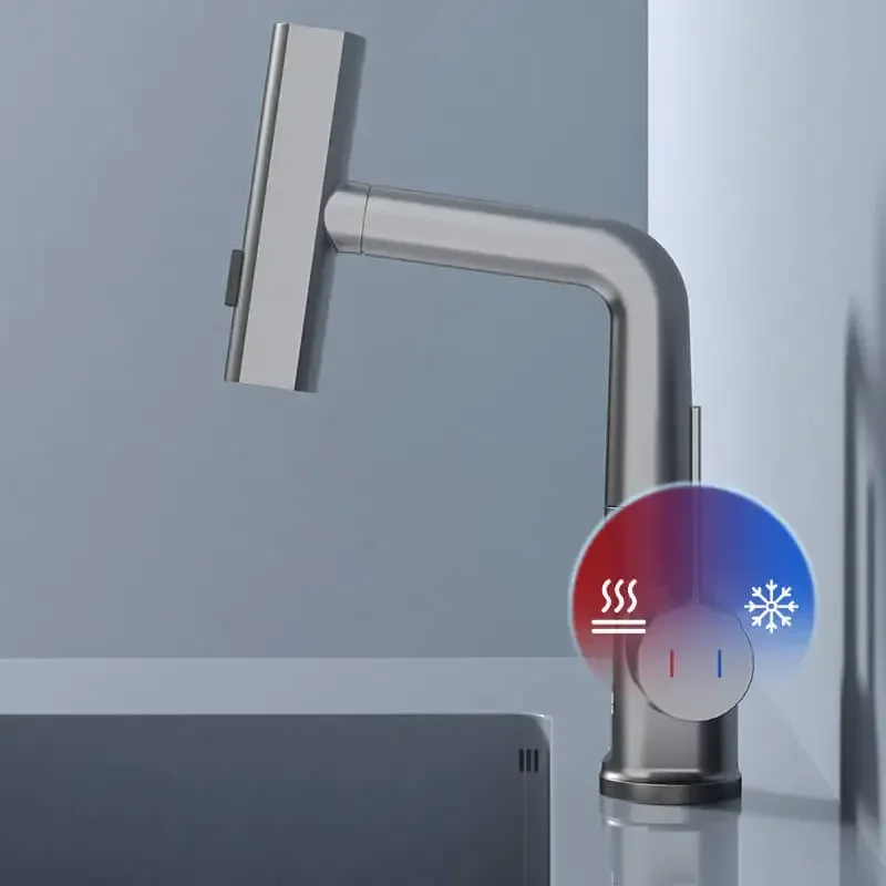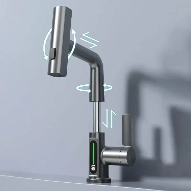Grifo de lavabo con pantalla Digital de temperatura para baño, rociador extraíble de flujo de cascada, mezclador de fregadero de agua fría y caliente, grifo de lavado