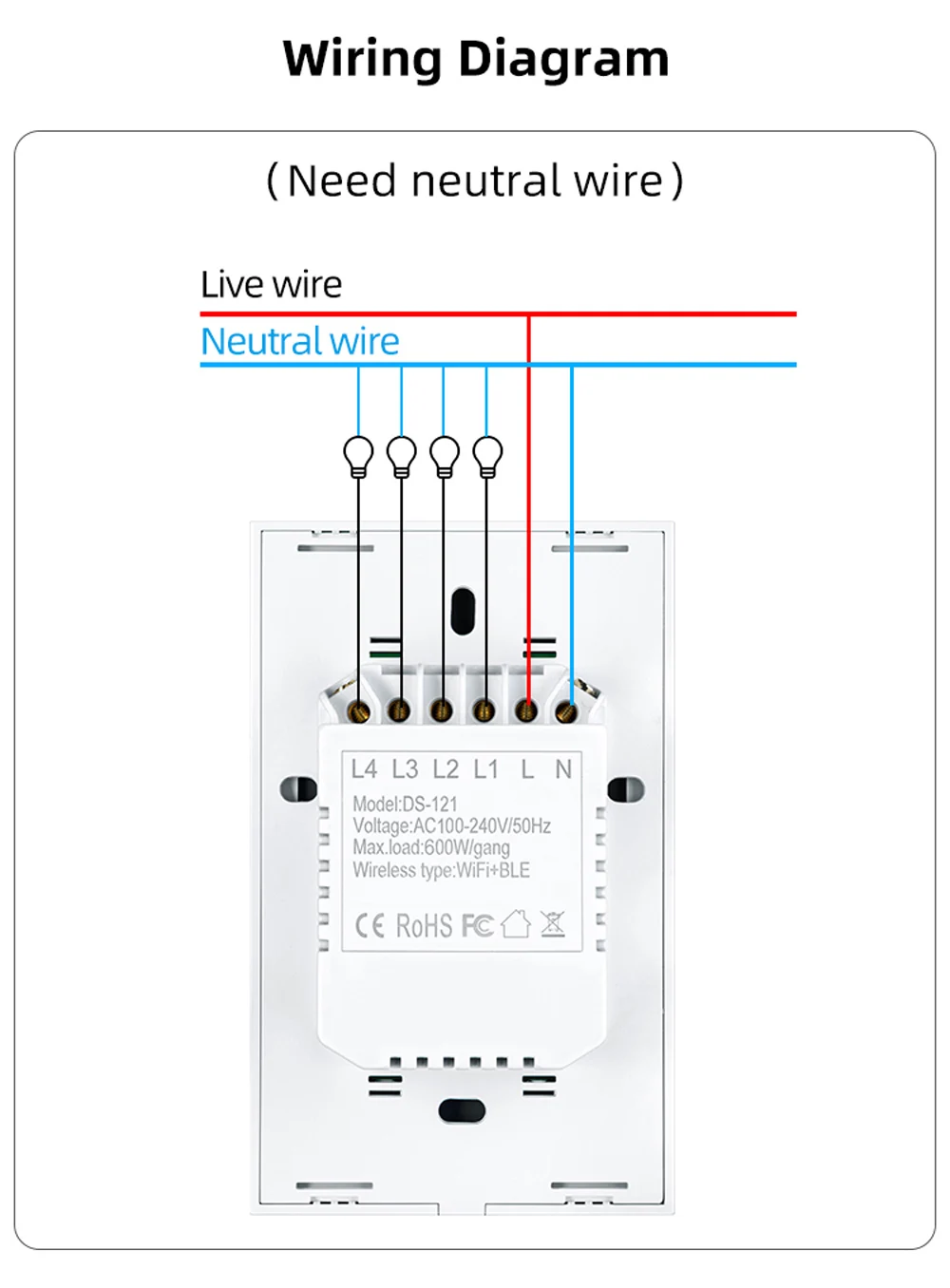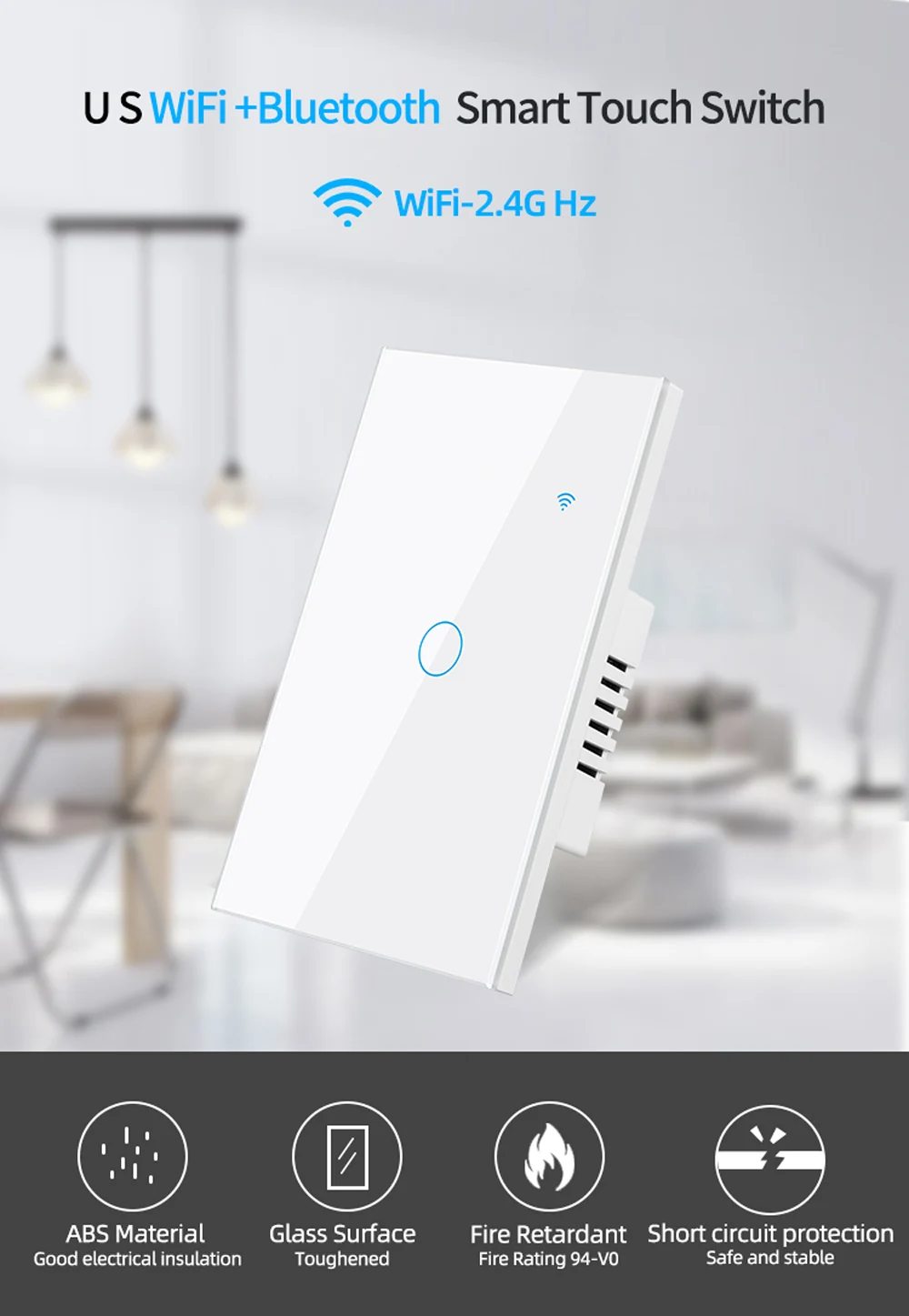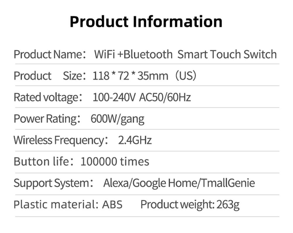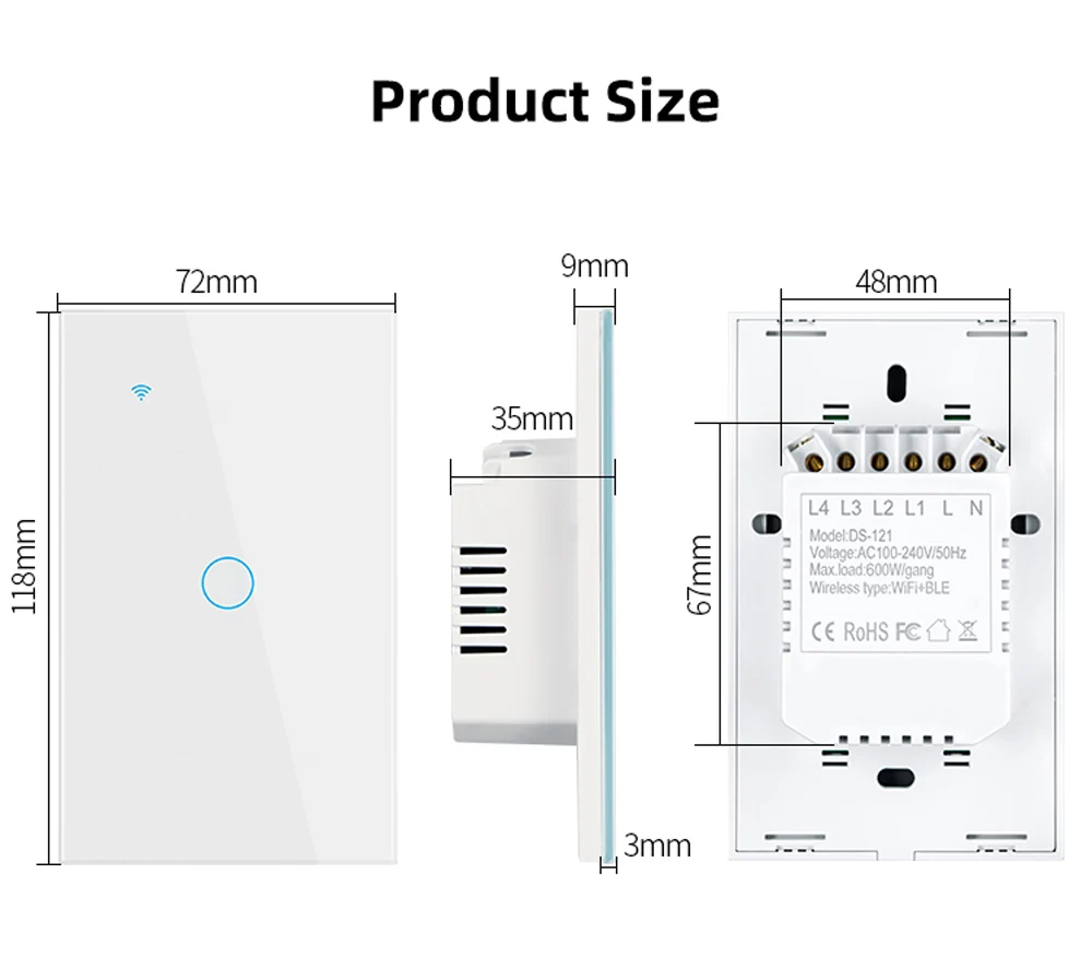 6.Seguridad y certificación: El interruptor de pared adopta materiales de primera calidad, como carcasa resistente al fuego, conexiones de bronce fosforado y PC avanzado + vidrio templado, puede proporcionar prevención de incendios y protección contra sobrecargas para proteger a su familia.