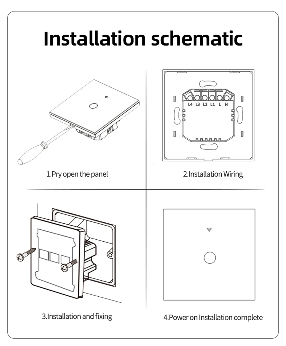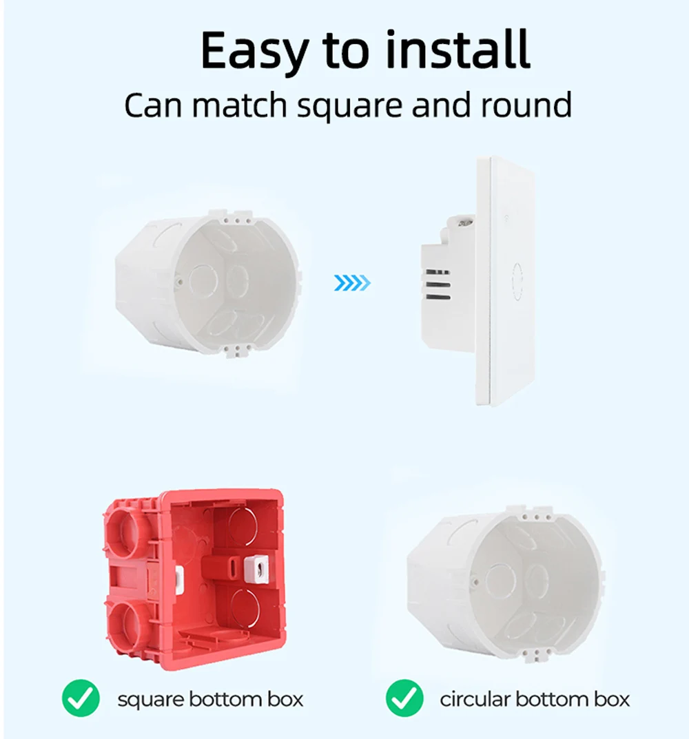 • Tipo de interruptor de 1/2/3/4 Gang :Disponible en tipos de interruptor de 1, 2, 3 y 4 gangas, este producto ofrece versatilidad y adaptabilidad a diferentes necesidades de iluminación en el hogar.