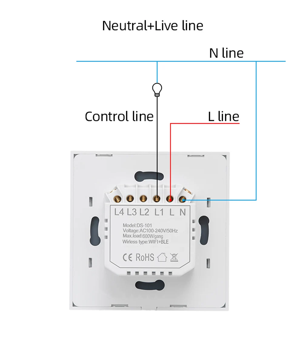 • Necesita una línea neutral :El interruptor inteligente funciona con una línea neutral, lo que garantiza una operación segura y eficiente de sus dispositos eléctricos.