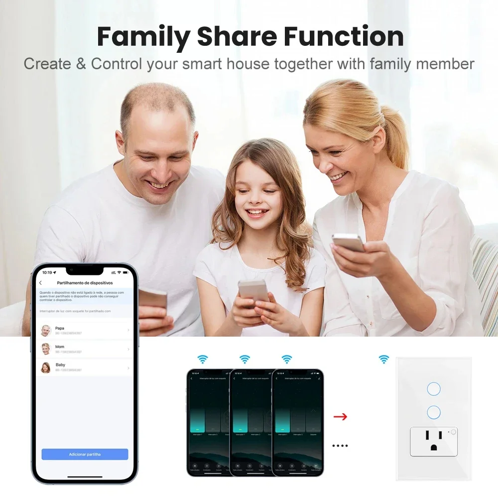 【Función de compartir en familia】-Puede compartir el interruptor de la luz y el enchufe con su familia con El derecho limitado, cree un hogar inteligente junto con su familiar.