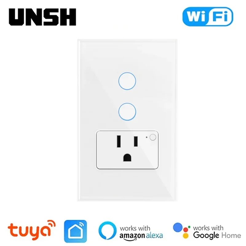 Interruptores táctiles con Panel de vidrio templado, enchufe estándar de EE. UU., México, Tuya, Wifi, 1 o 2 entradas, interruptor inteligente, funciona con Google Home/ Alexa