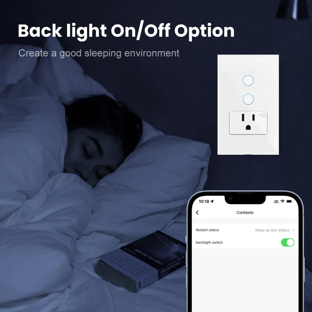 【Enchufe de control individual e interruptor de luz】 El interruptor de luz y el enchufe se pueden controlar individualmente a través del manual, la aplicación y el control de voz.