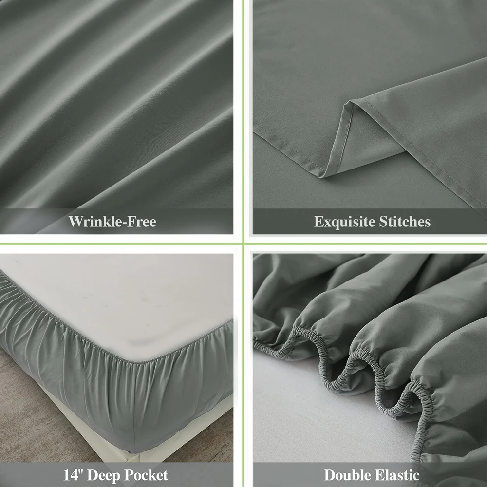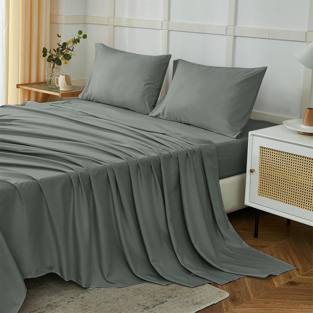 Juego de cama liso de 4 Uds., sábanas y fundas de almohada súper suaves y ligeras con bolsillos profundos de 14 pulgadas Queen King