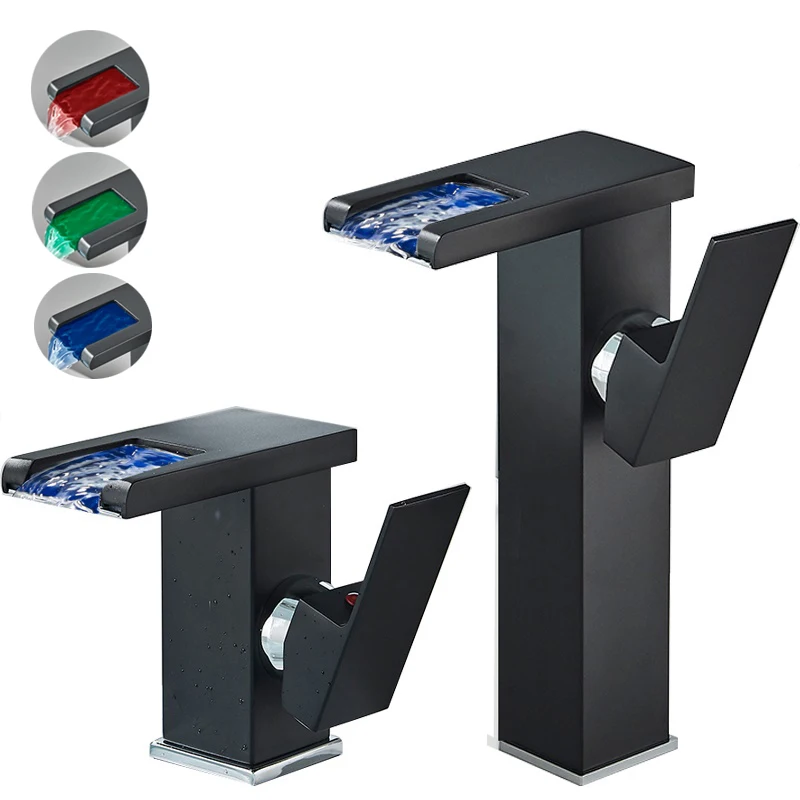 Shinesia-grifo de lavabo LED, grifos de lavabo de baño de lujo, grifo alto y corto para lavabo de baño, mezclador de agua fría y caliente